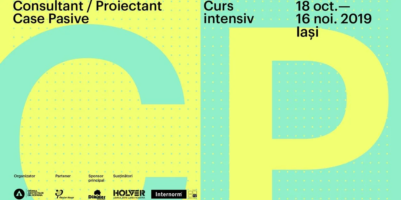 Cea de a 5-a ediție a cursului cu tema CASE PASIVE va avea loc la Iași în perioada 18 oct – 16 noi 2019, sub licența Passive House Institute (PHI) din Darmstadt. Cursul este organizat de Ordinul Arhitecților din România și DIMMER este sponsor principal.