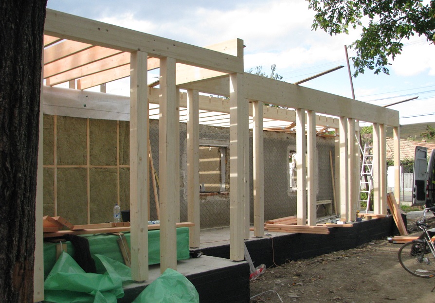 Cum fundația a fost terminată, am început deja să facem structura din lemn și să montăm o parte din pereți. Spre deosebire de casele pe structură de lemn făcute de la zero, în acest caz vom depinde mai mult de vreme și va trebui să avem mare grijă să nu deteriorăm vechea construcție. Este o lucrare care va dura mai mult decât de obicei, dar mult mai puțin comparativ cu una similară realizată din materiale obișnuite de construcție.