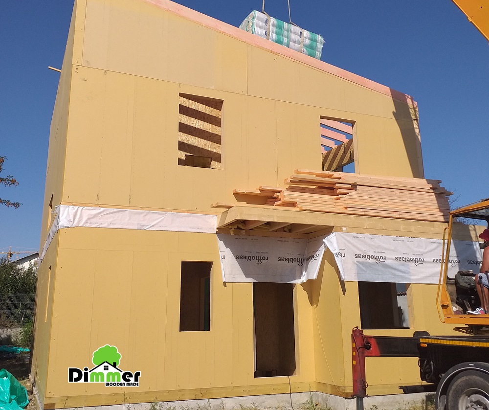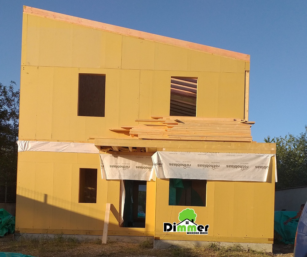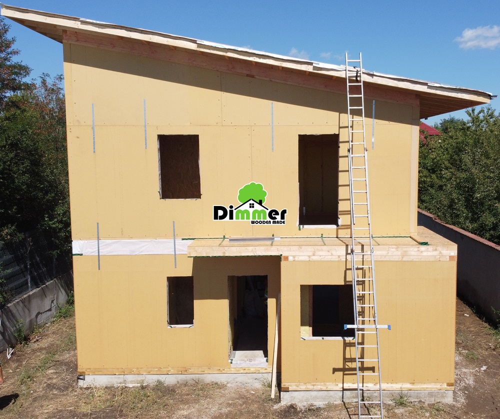 Ceea ce vedeți aici este realizat în 10 zile, de la nivelul placii de beton, pănă la izolarea acoperișului, pereții, vata, folia. Doar 10 zile, o construcție din cărămidă nu se poate realiza într-un timp atât de scurt. Plus că este uscat, nu este mizerie, nu este apă, faptul că timpul de lucru este redus elimină și alte probleme care pot apărea în timpul construcției.