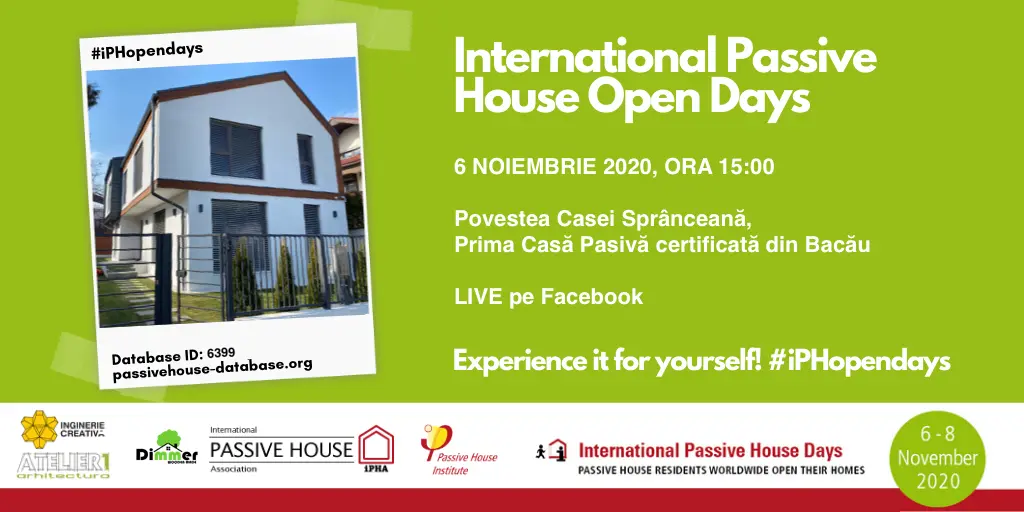 Construită în 2019 și certificată în august 2020, Casa Spranceană, prima Casă Pasivă PLUS certificată din Bacău este fără doar și poate un proiect de referință pentru Dimmer. În cadrul Zilelor Caselor Pasive, își deschide porțile pentru un tur și un interviu LIVE cu toți cei implicați în proiect – beneficiarii locuinței, cei implicați în faza de proiectare, de execuție și în procesul de certificare.