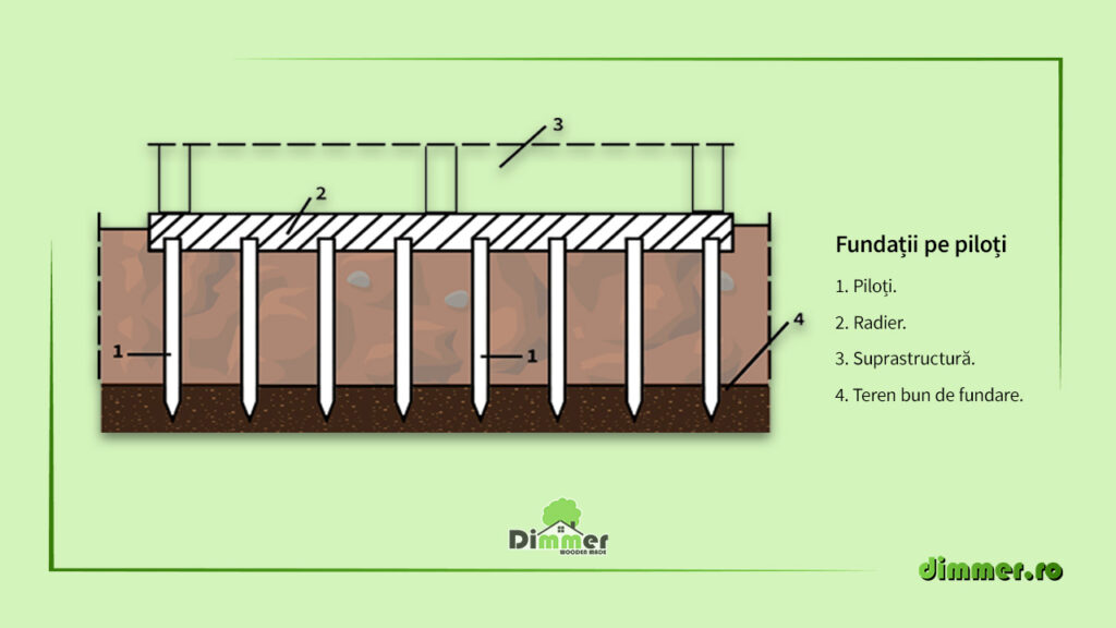 În acest caz vom vorbi despre fundațiile pe piloți care se utilizează în cazul în care studiul geotehnic identifică terenul bun de fundare doar la o adâncime foarte mare.