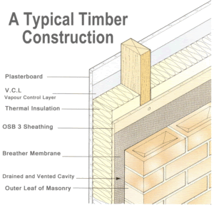 Structura de tip timberframe este formată din pereți prefabricați, care se fac preponderent în fabrică, cu o precizie ridicată, și se asamblează rapid pe șantier ca un Lego.