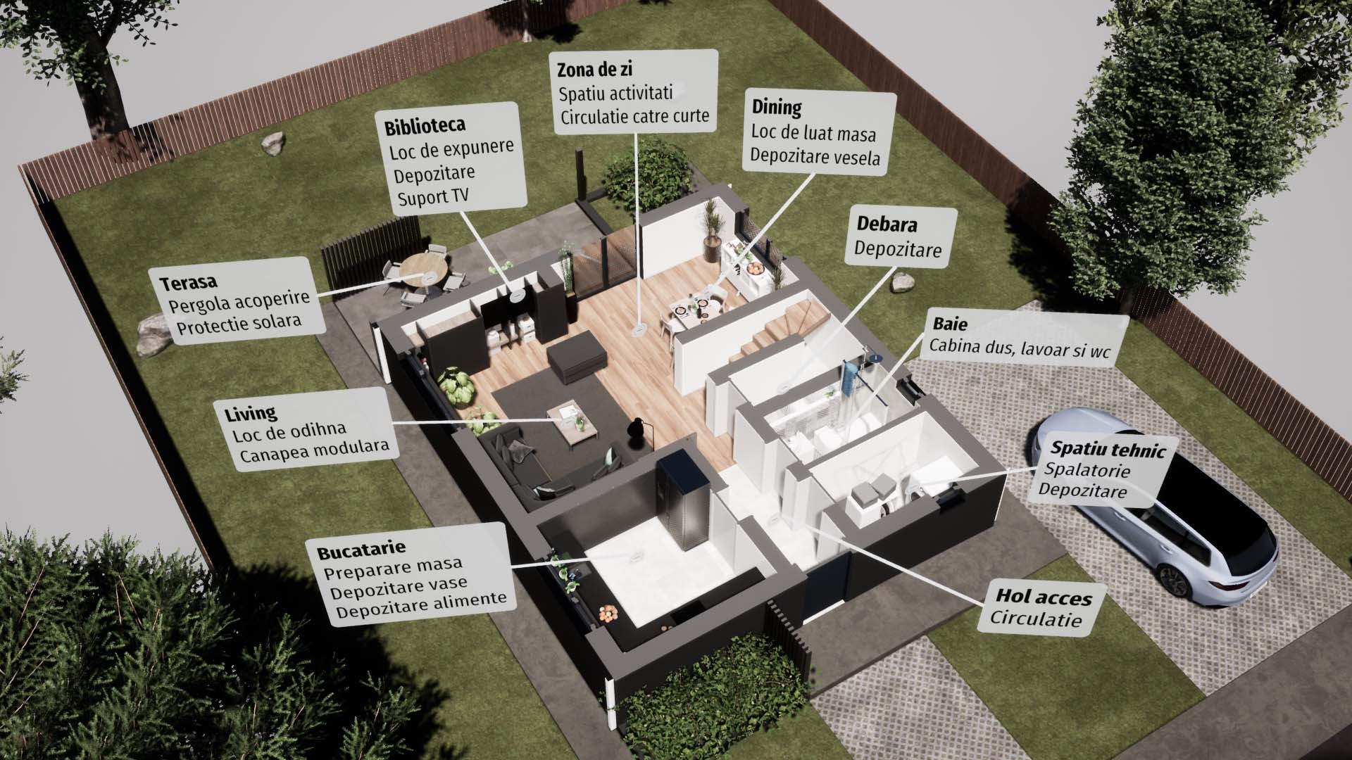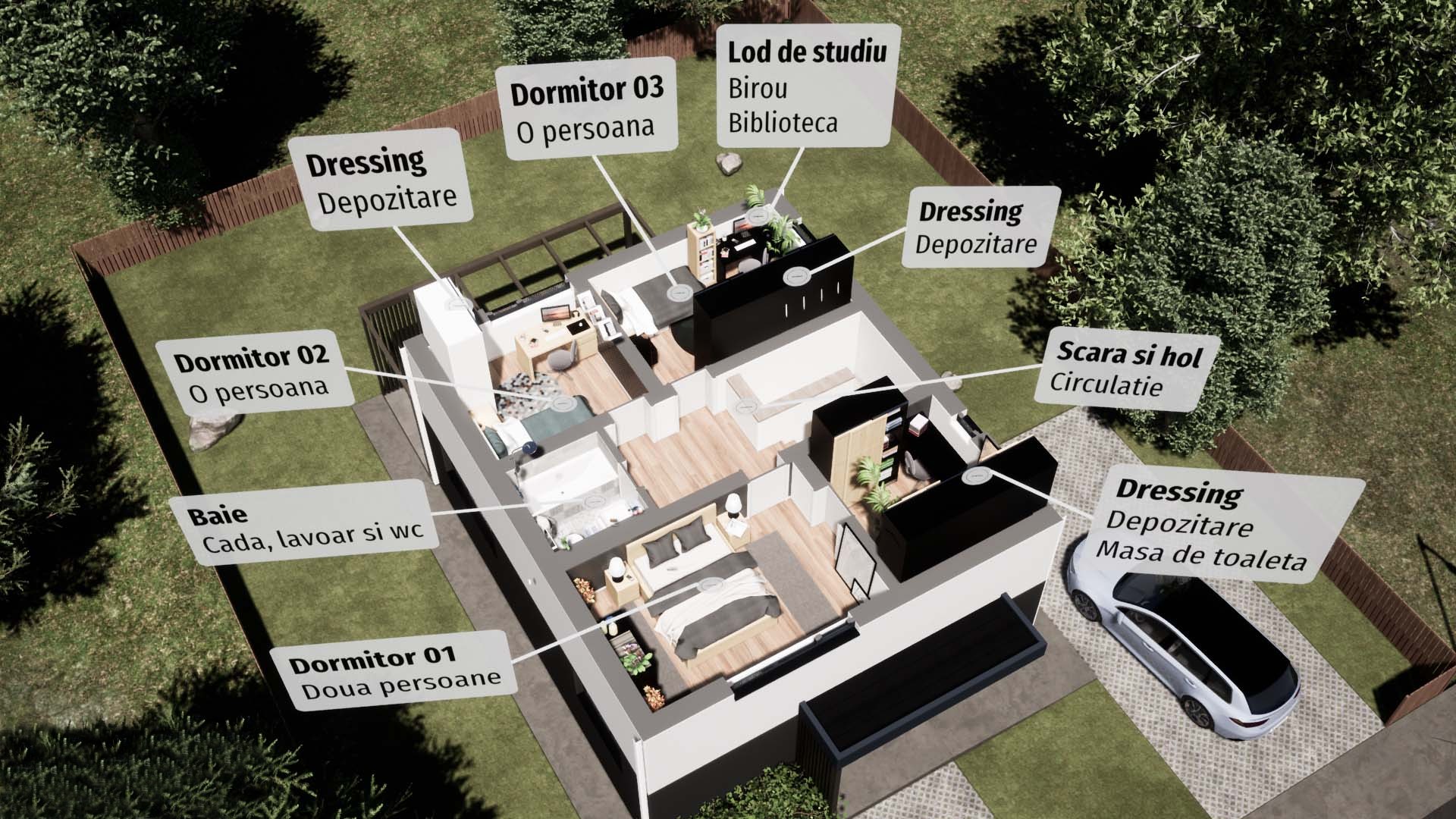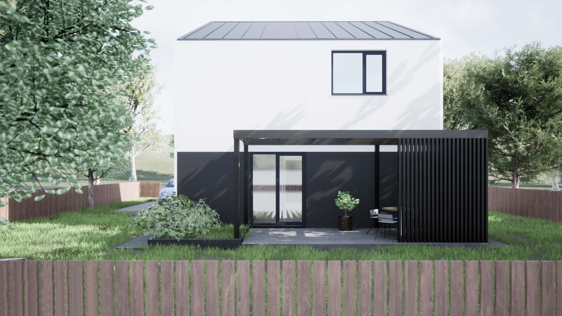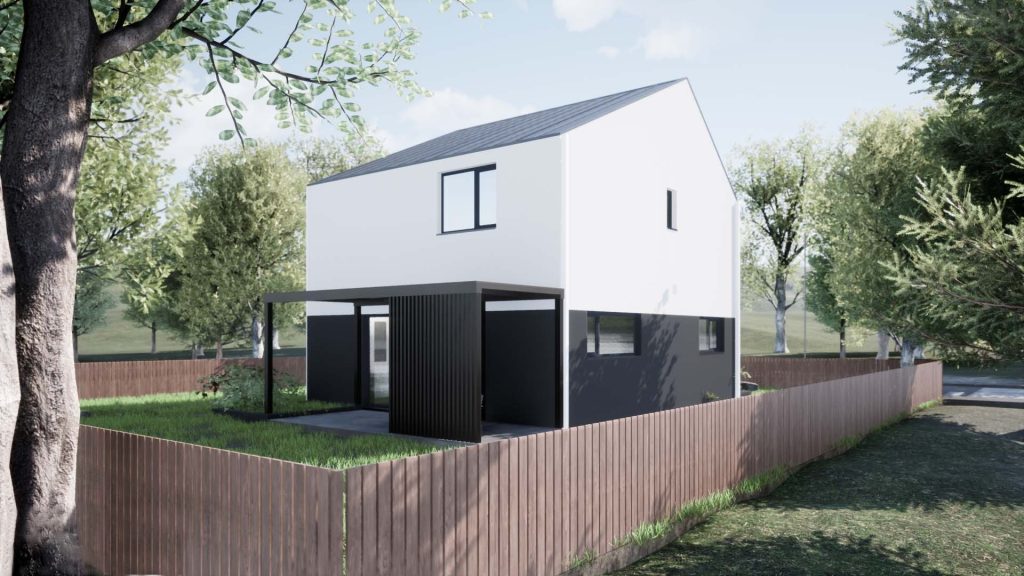 Este concepută în parteneriat cu TECTO Arhitectura, birou de proiectare cu experiență în domeniul locuințelor sustenabile și performante energetic, astfel încât să îndeplinească toate cerințele standard pentru o familie cu unul sau doi copii, respectând în același timp reglementările de locuit din România.