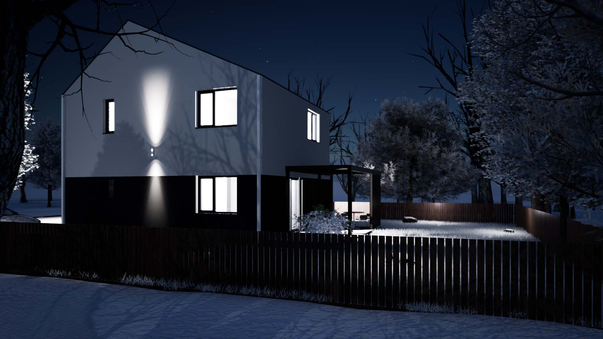 De la exterior, prima impresie pe care casa o dă este cea de simplitate. Cu un volum cu o formă simplă, apropiată de cub, protejat de un acoperiș în două ape, construcția poate fi amplasată pe orice formă de teren.